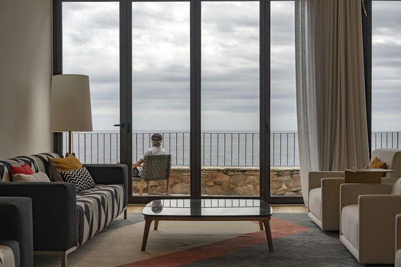 En los salones, por ejemplo, se han creado micro atmósferas que invitan a los huéspedes del hotel a relajarse y dejarse cautivar por el paisaje, donde los cerramientos cobran un papel fundamental. Asimismo, las habitaciones gozan de unas vistas panorámicas al mar y a las calas que rodean al parador y como nexo de unión se han colocado correderas de hoja oculta LUMEAL. Gracias a su estética minimalista, se ha podido aprovechar al máximo la entrada de luz natural, reflejada en el azul del mar, en cada una de las estancias donde los usuarios pueden gozar del máximo confort.